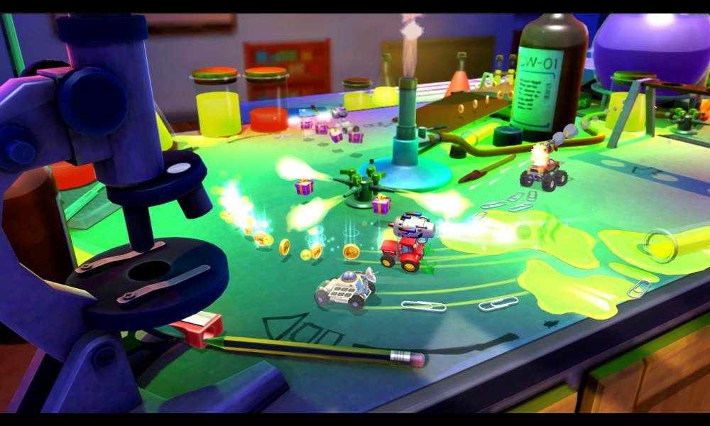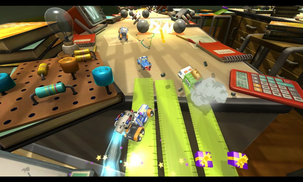 Společnost Codemasters se rozhodla s titulem „Toybox Turbos“ oživit i stejnojmenný „hitovkový“ simulátor říznutý silně arkádou, který hráči vždy přímo milovali! Dostane se vám do rukou celých 35 mini-autíček (lze tunit!), s nimiž se můžete jít prohnat po jedné z 18 šílených tratí. A jelikož by to byla jen tak nuda, rozhodli se autoři přidat i tuny všelijakých power-upů, které (když se dobře použijí a aplikují na situaci) mají potenciál rozhodnout o vítězství v celé hře (miny, kulomety, kladiva, …).